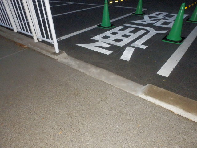 中央駐車場から区画内への出入りの折、縁石があるため車椅子等の通行に支障があるとのご意見がありスロープの設置にて対応しておりましたが、この度一部縁石を取り除く工事を行いそのまま通行できるようにいたしました。