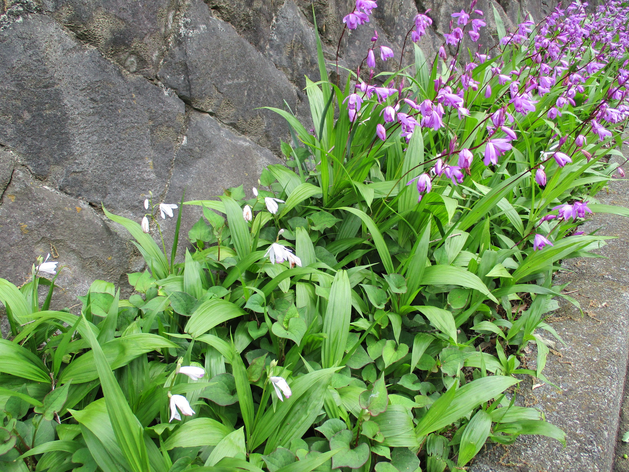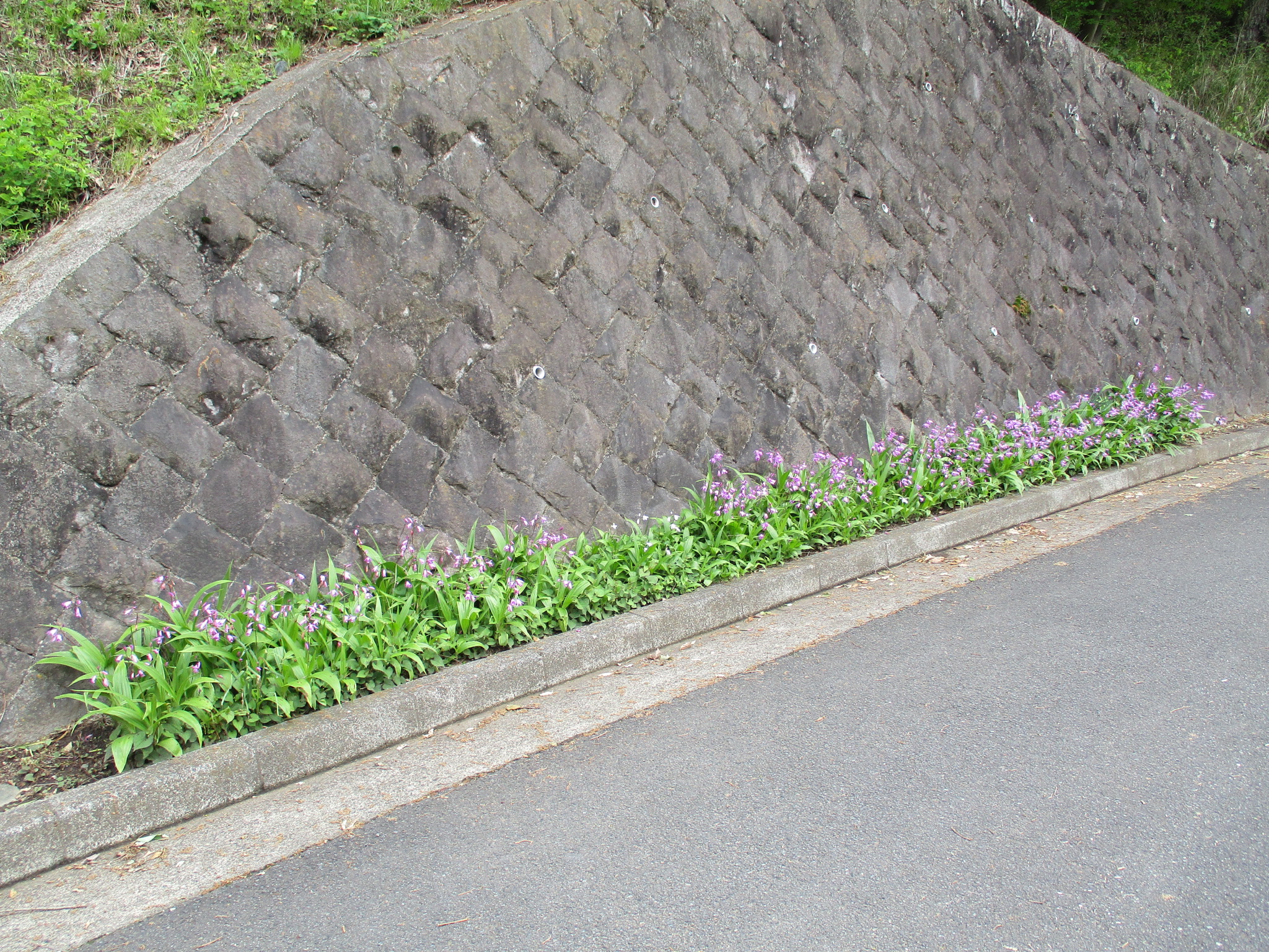 管理事務所裏の車道脇の紫蘭(シラン)が咲きはじめました