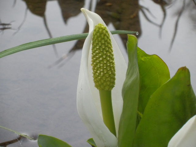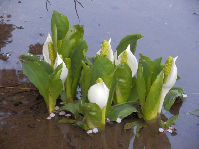 蓮の池で、ミズバショウが咲きだしました