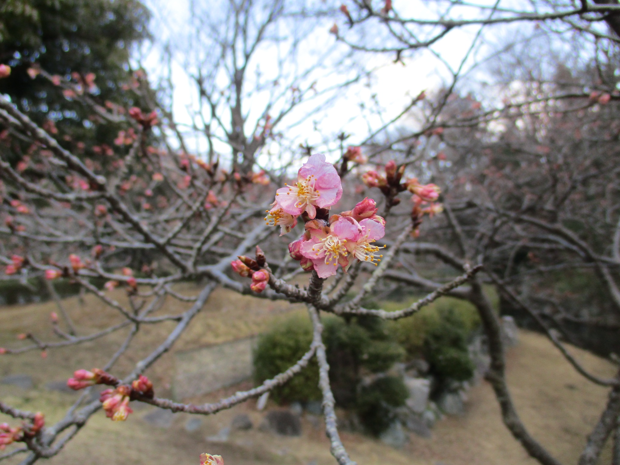 土屋霊園 蓮の池の河津桜が咲きはじめました