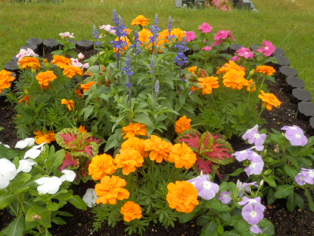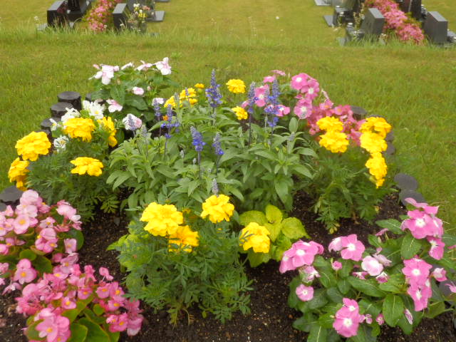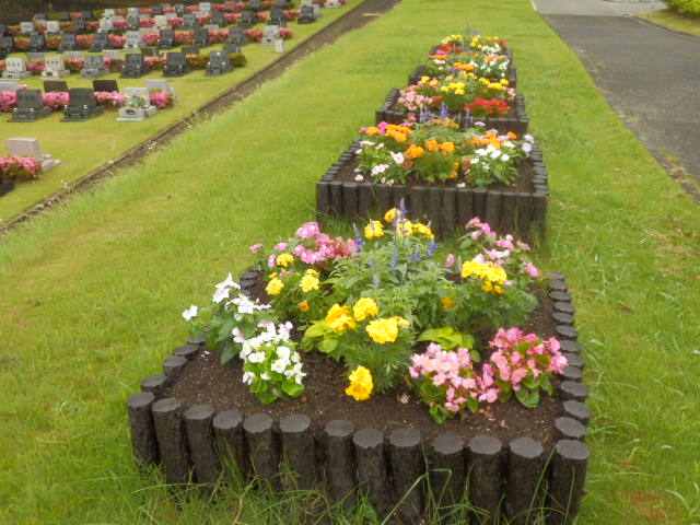 芝生墓地 上段の花壇に、一年草を植えました。