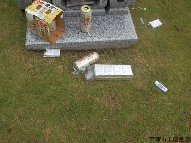 以前にも何回かお願い致しましたが、陶器・ガラス容器・飲食物等を放置することで破損による怪我や飲食物にカラス・スズメバチ等が集まり施設の安全な利用に支障をきたす要因となっております。