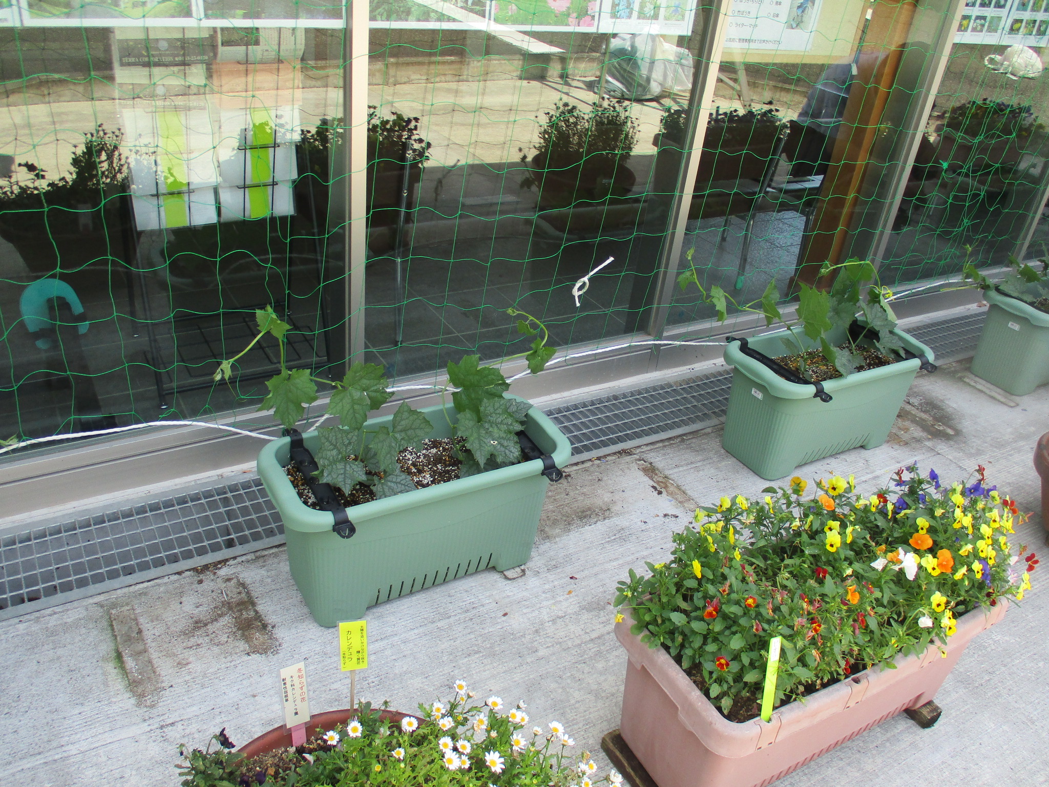 🥒🥒🥒 緑のカーテン(ヘチマ)設置 🥒🥒🥒