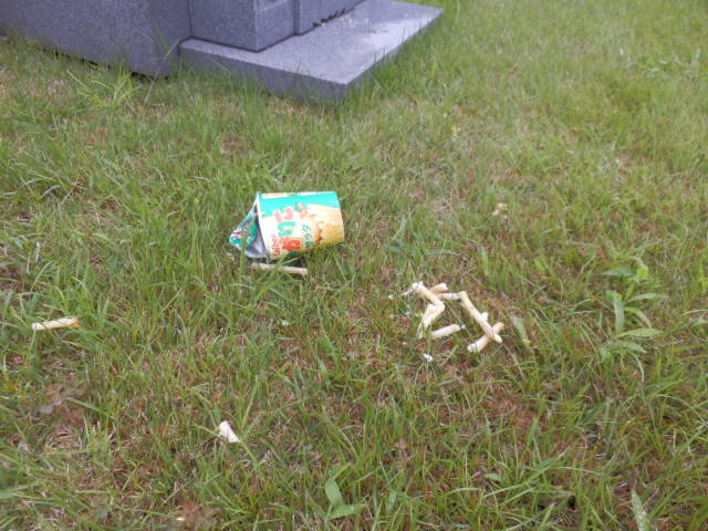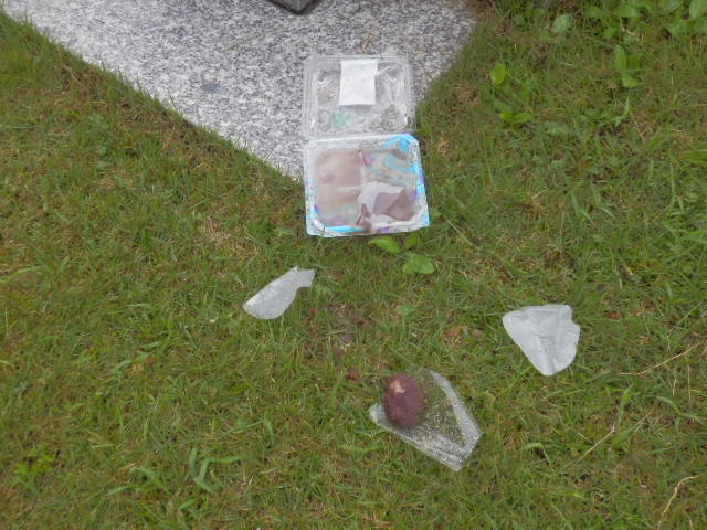以前にも何回かお願い致しましたが、陶器・ガラス容器等を放置することで破損による怪我や飲食物にカラス・スズメバチ等が集まり施設の安全な利用に支障をきたす要因となっております。