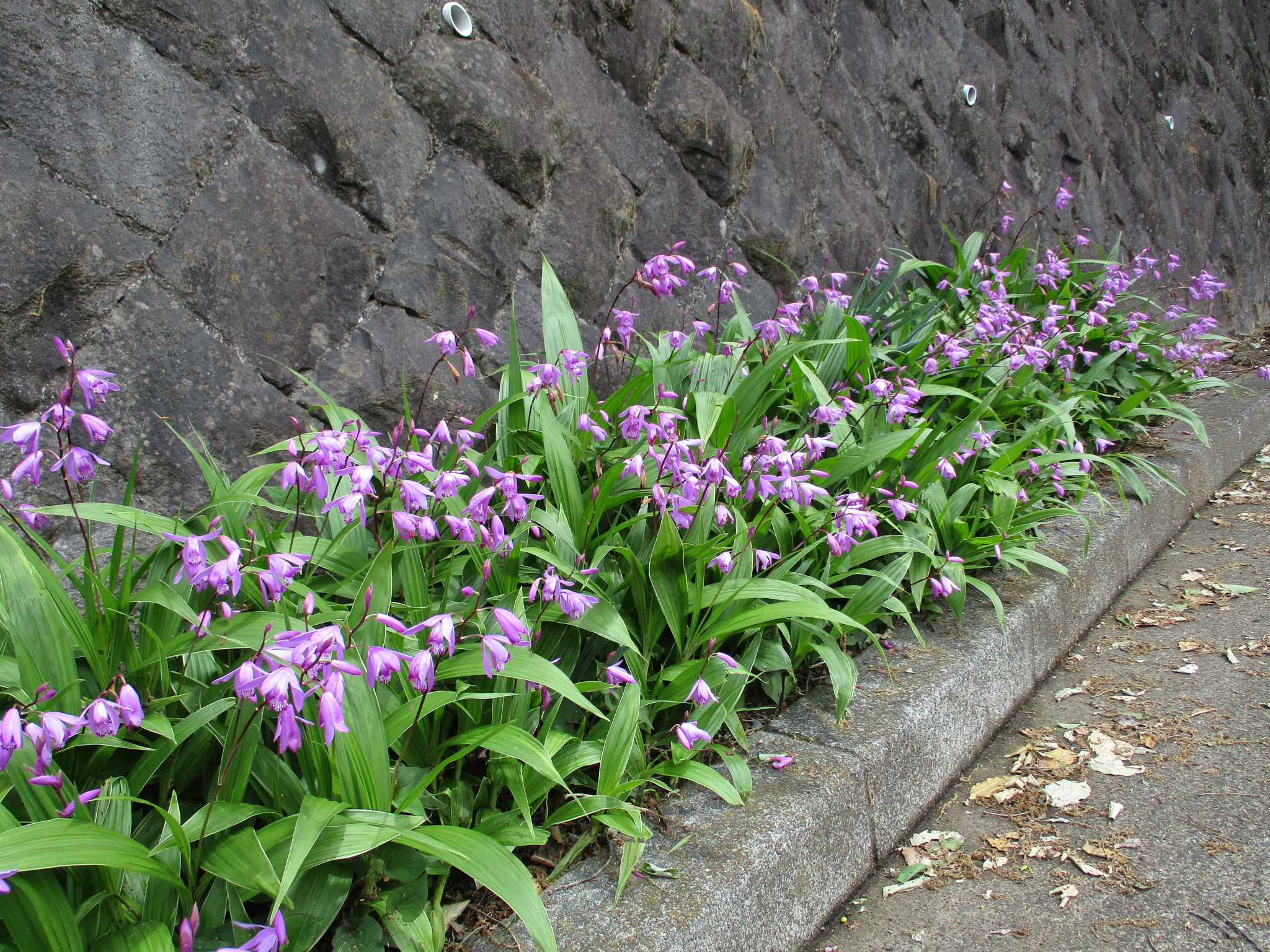 管理事務所裏の車道脇の紫蘭(シラン)が咲きはじめました
