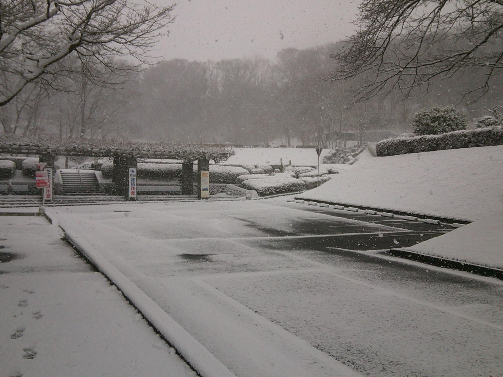 車道・墓参道、共に凍結状態となっています。