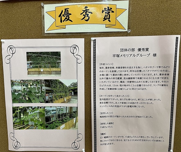 令和5年度 平塚市緑のカーテンコンテストにおいて